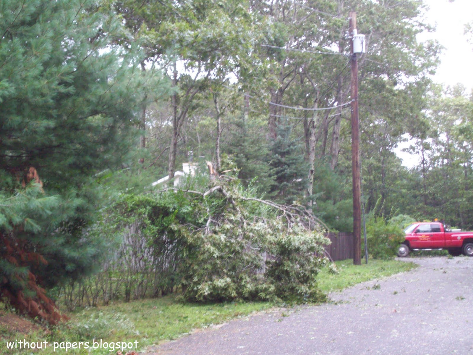 Ураган "Ирэн", тропический шторм точнее уже, пришел в наши края, на Лонг Айленд. Ничего собенного, сейчас по крайней мере. Так, пару деревьев повалило.